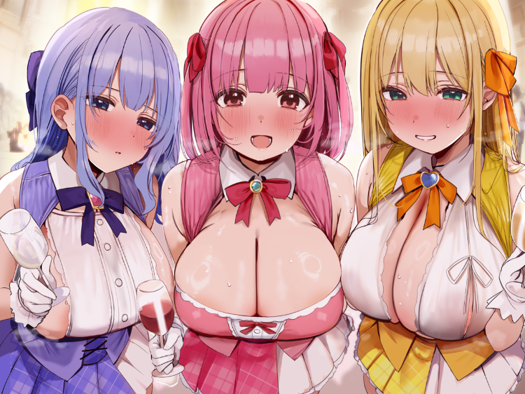 尽情享受肉感十足、发育良好的偶像散发的费洛蒙,以及下流摇晃的色情巨乳×3,体验奢华的甜蜜高潮♪