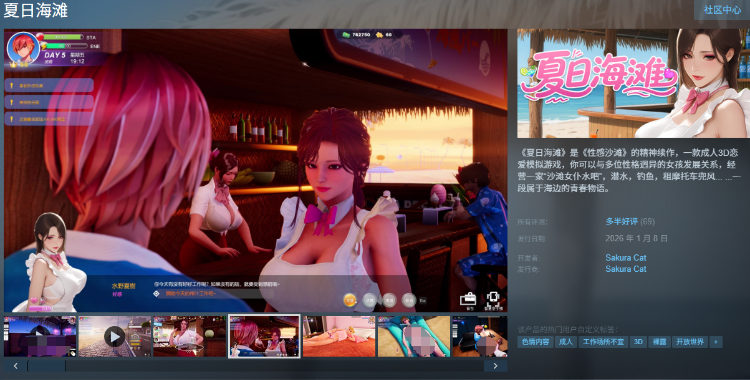 《夏日海滩》是《性感沙滩》的精神续作,一款成人3D恋爱模拟游戏。