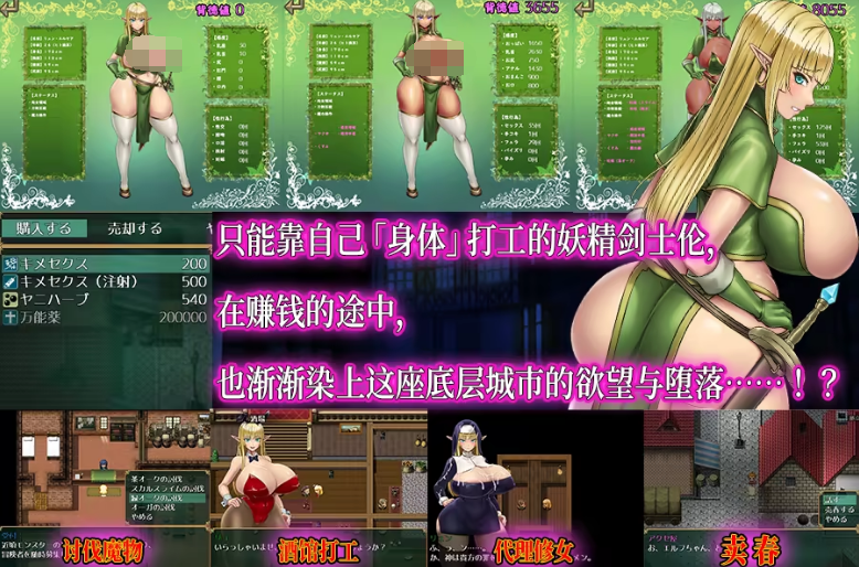 嘴上说着才不会堕落,下一秒却呻吟不止!?妖精村庄色色传染病横行,天真的妖精剑士踏入人类的底层城市,为了买下天价解药,只好用身体打工赚钱。充满背德快感与堕落诱惑的异种奸RPG!