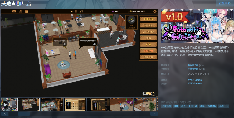 【经营模拟SLG】扶她★咖啡店 Ver1.0 Steam官方中文步兵版