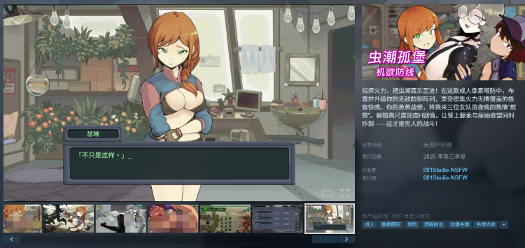 指挥火力,把虫潮轰杀至渣!在这款成人像素塔防中,布置并升级你的无敌防御阵列,享受密集火力无情覆盖的极致快感。你的英勇战绩,将换来三位女队员夜晚的热情“慰劳”。解锁高尺度动态H剧情,让肾上腺素与原始欲望同时炸裂——这才是男人的战斗!