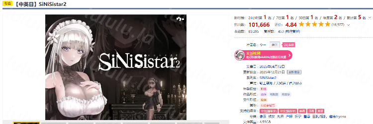 是著名大作SiNiSistar的第2代作品,依然是哥特少女勇闖惡魔城主題。
